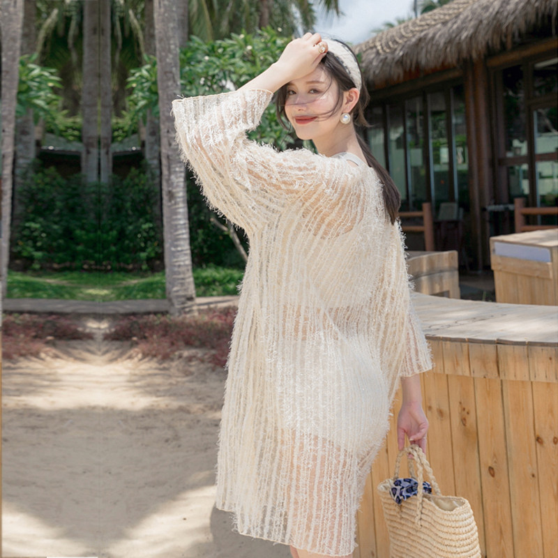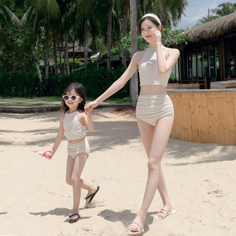 New Parenting Swimsuit Mother Girl Split White Sunscreen Shirt Three Sets Girl Girl Swimsuit Beach Bathing Suit