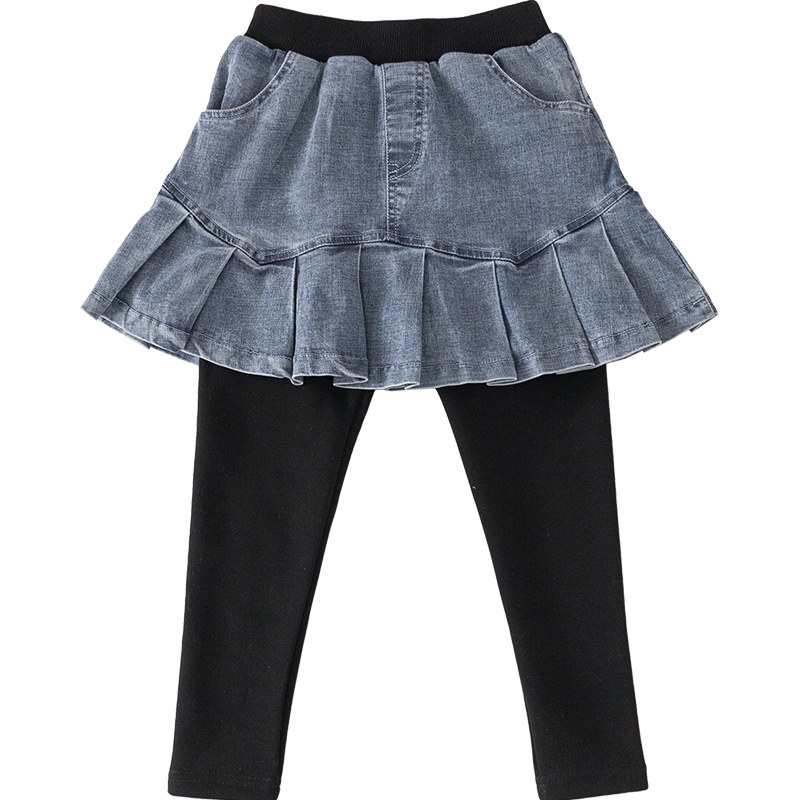 Boat Rat Girl Gush Pants Autumn Winter Outwear Foreign Pie Children Fake two Cowboys Inner Lap Pants Nepotism Baby Dress Pants