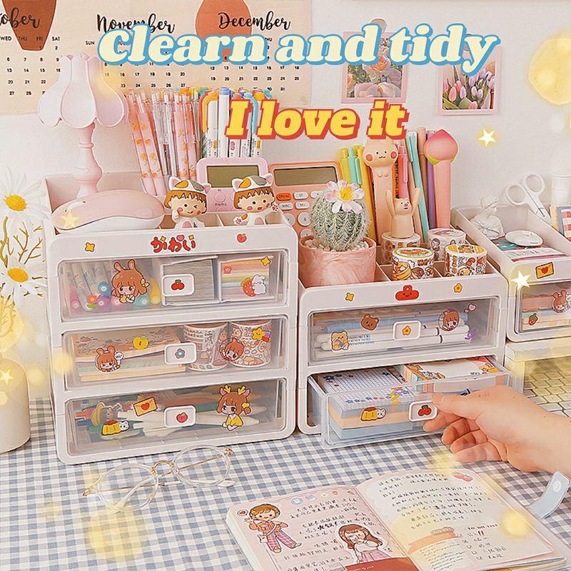 This study drawer hand account sticker storage box desktop classification dust-proof storage box hand account tape finishing creative pen holder