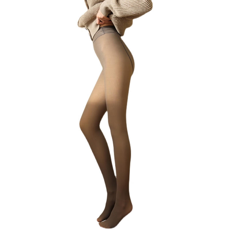 Japanese flight attendant gray one-piece skin-through pants tall autumn and winter plus velvet thickened base fake through meat pantyhose super lengthened