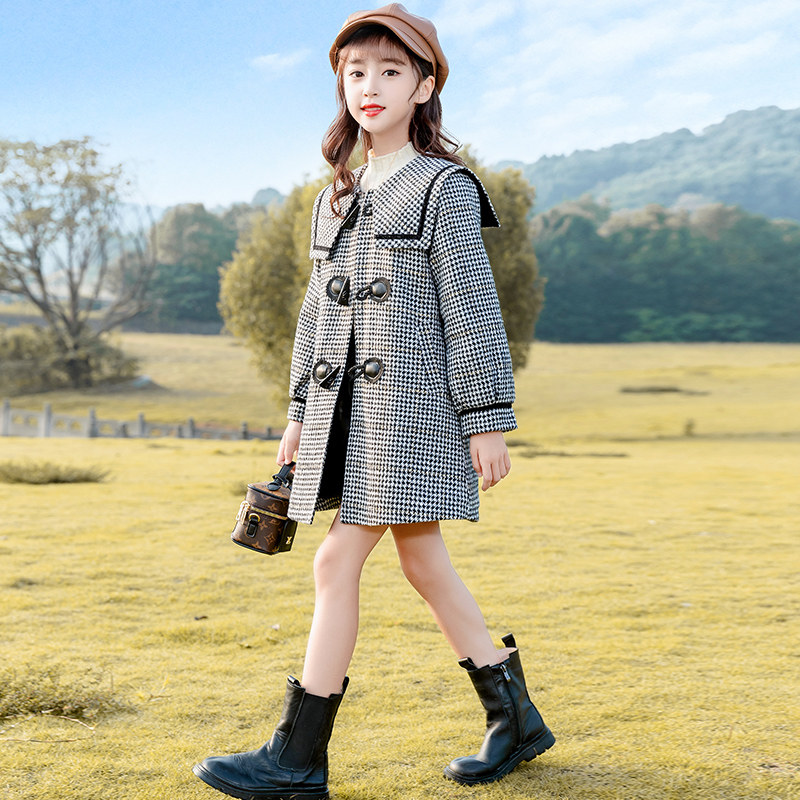 Girl Windcoat Jacket Children Coat Children Great Clothes Spring Dress New Korean Version Female Big Boy College Wind Medium Long Version Trendy Blouse Women
