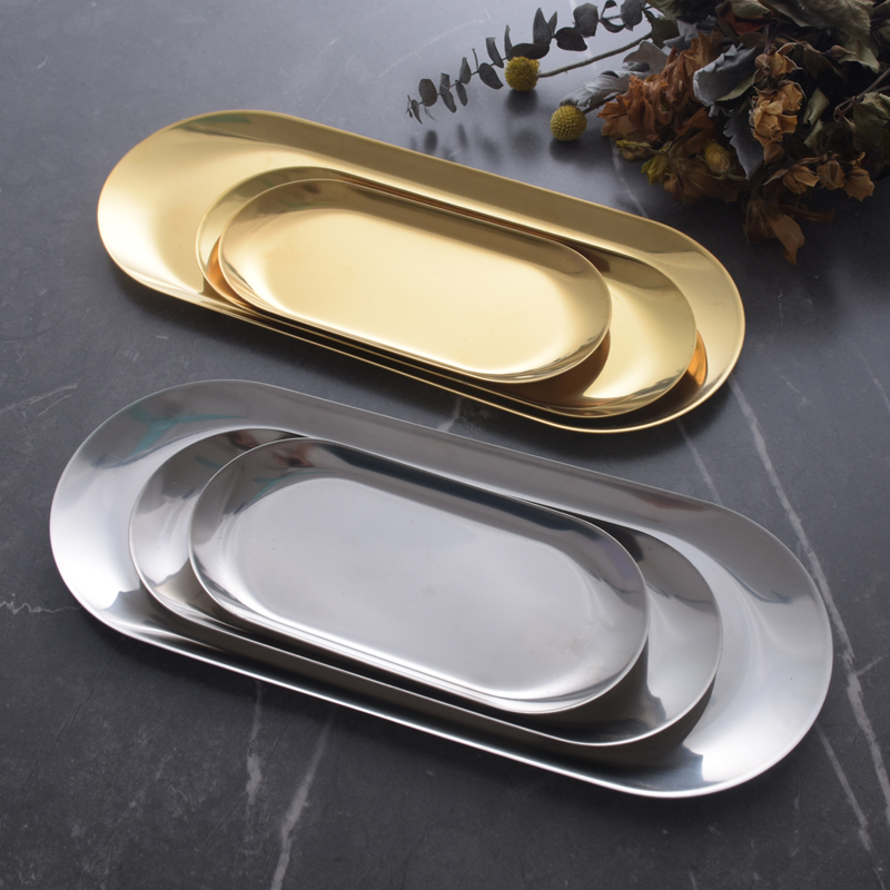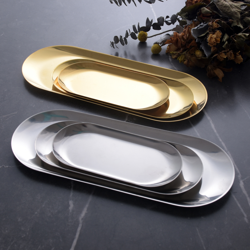 Stainless Steel Oval containing disc Home Mirror Accessories Contain metal Count Hearts Disc Sushi Swing Tray