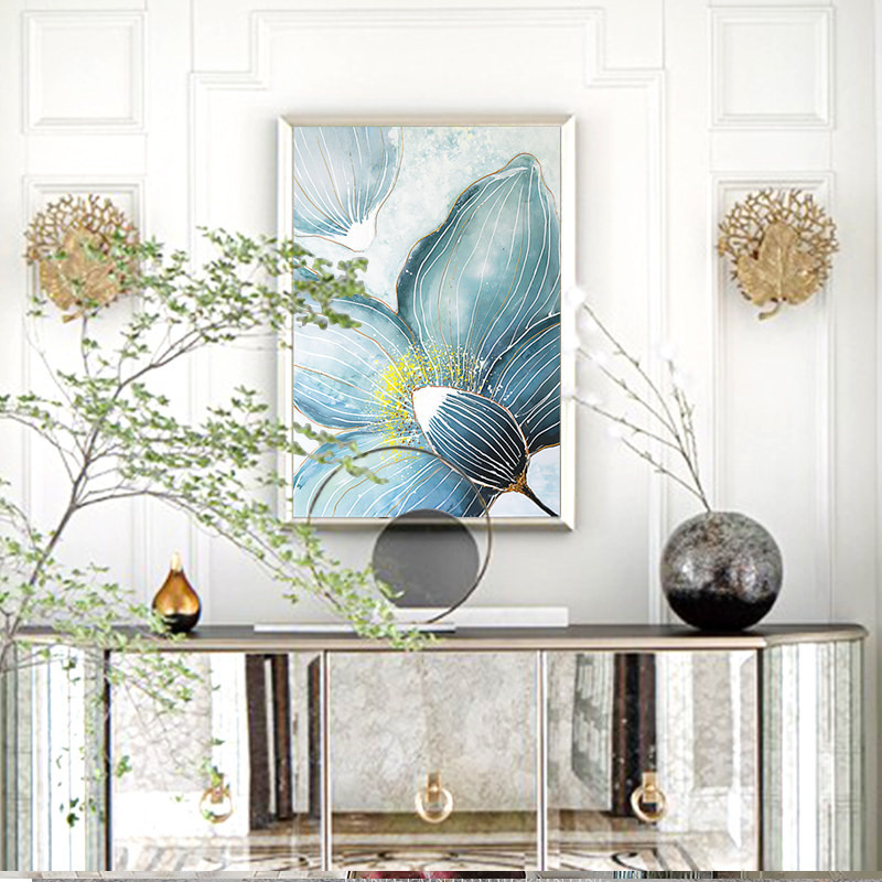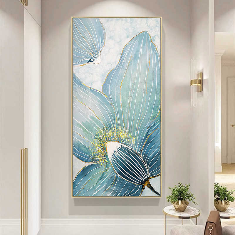 New Chinese Xuanguan Hand-painted Oil Painting Corridor Aisle Light Lavish Florist Decoration Painting into the door to the door vertical version hanging painting