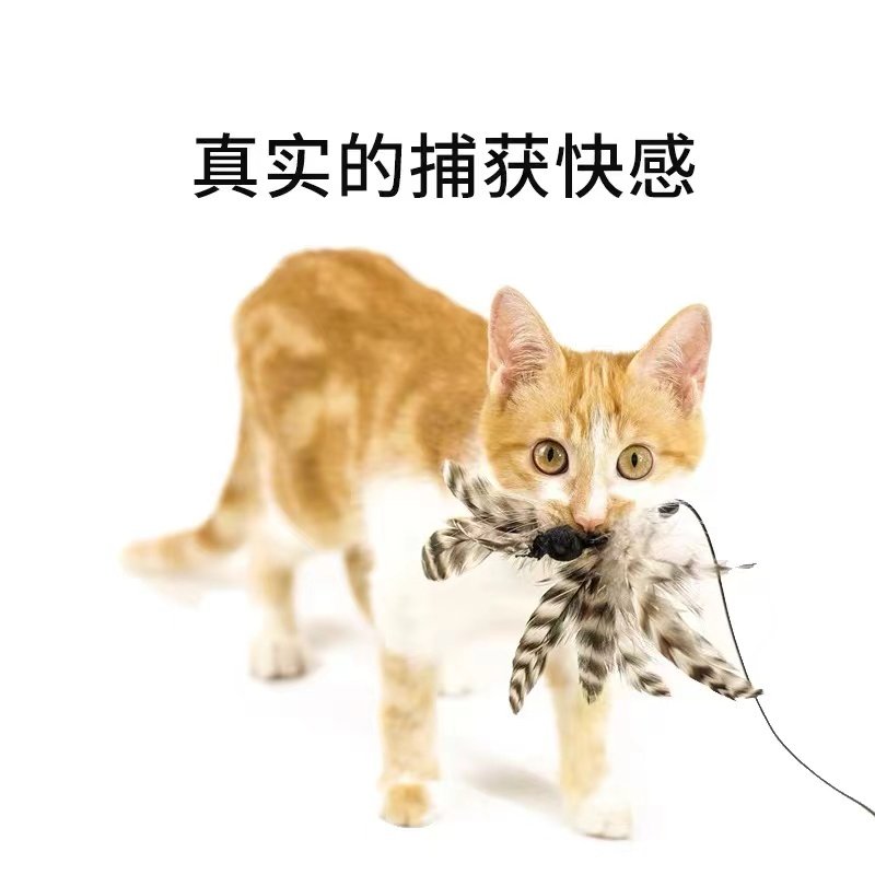 Queen Meowcard primary color feather teasing cat stick disinfection chicken feather long rod elastic rope bell teasing cat stick resistant to bite