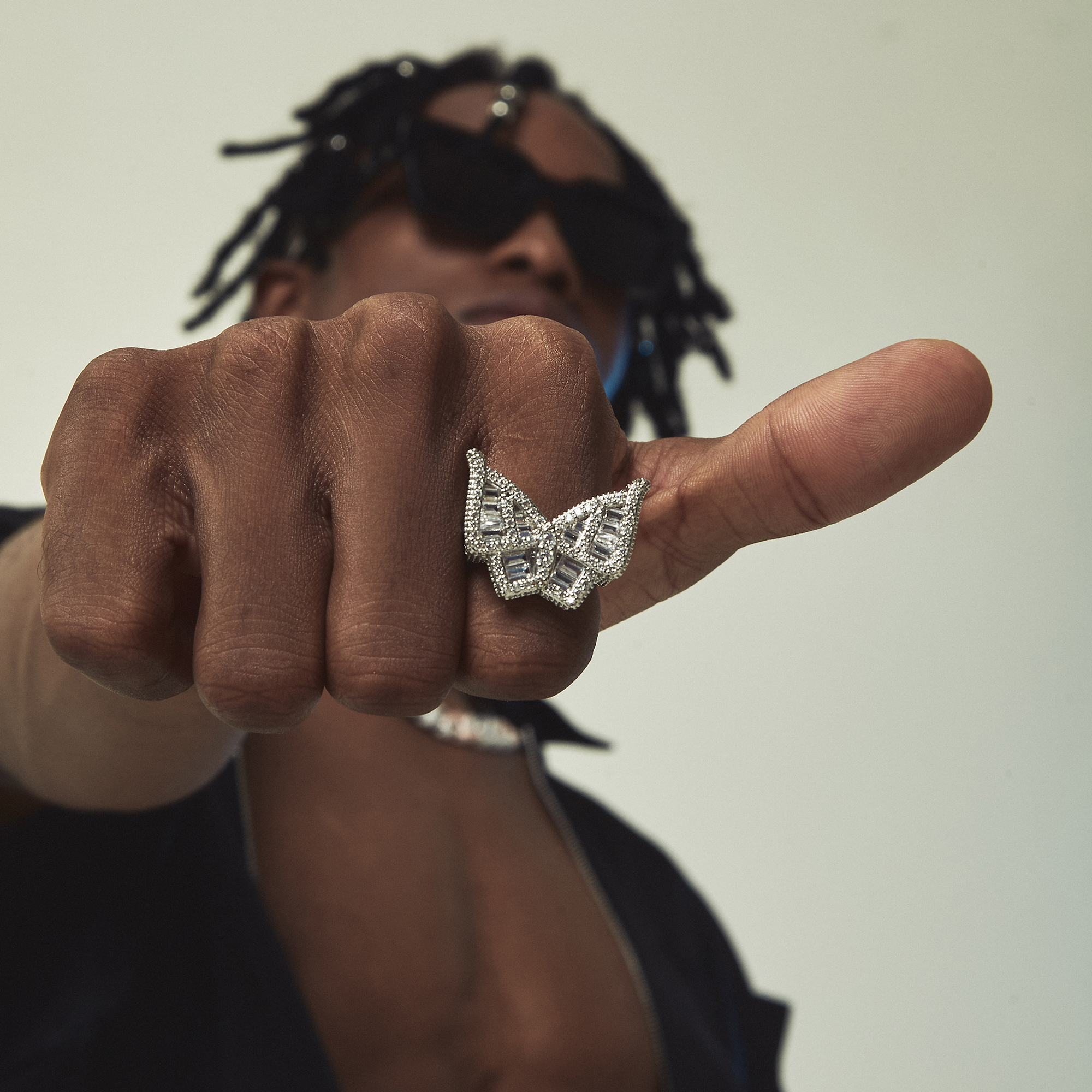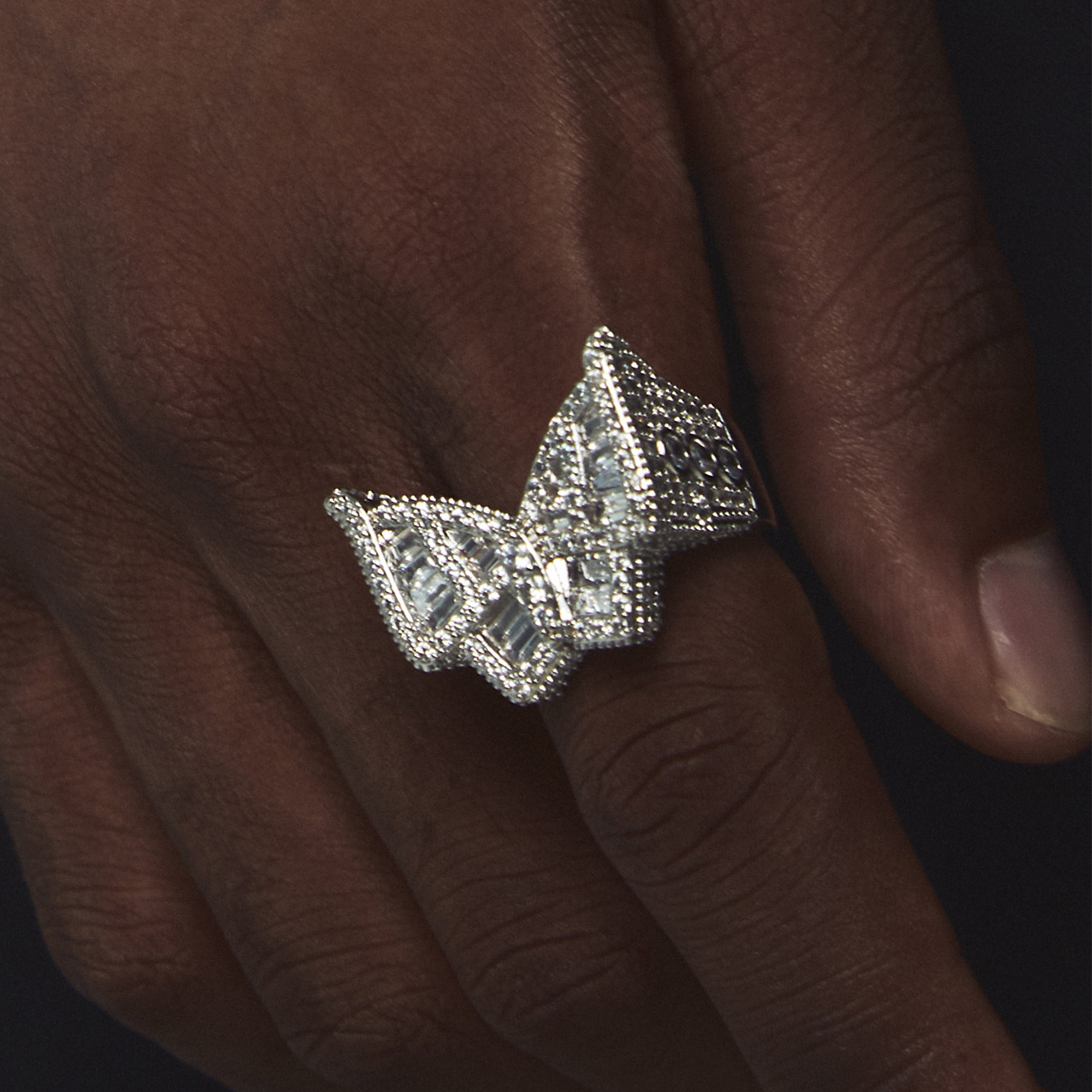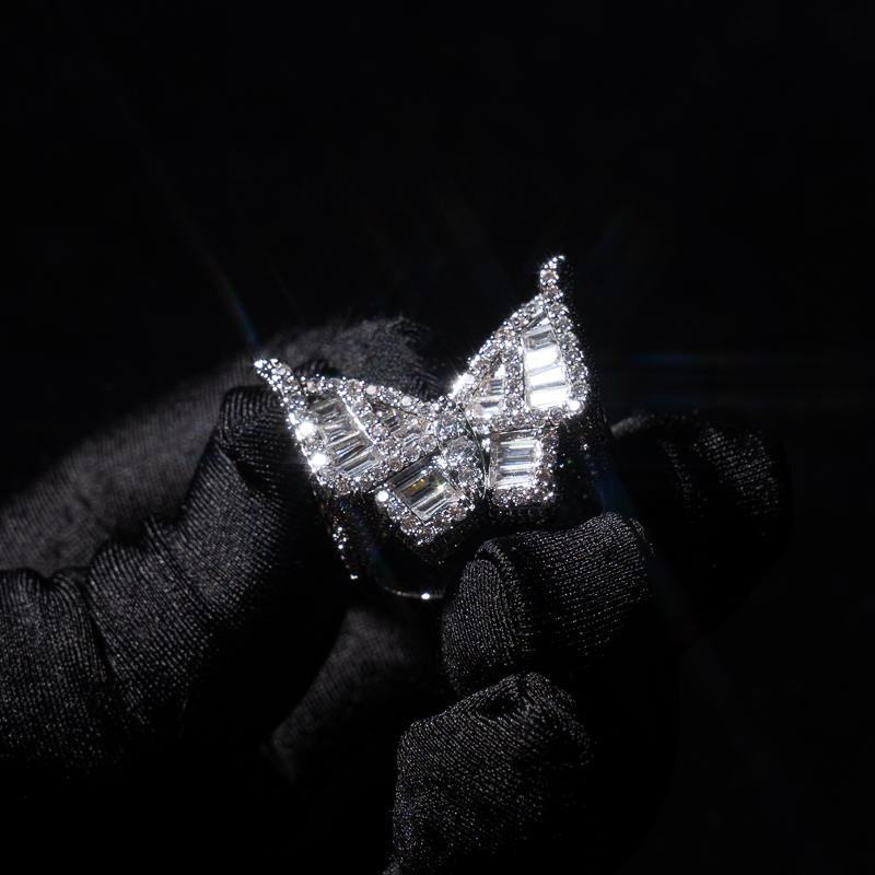 ICEGANG Butterfly T-square Diamond Ring Ring with Old Ring Girl Hip-Hop in Men and US Current