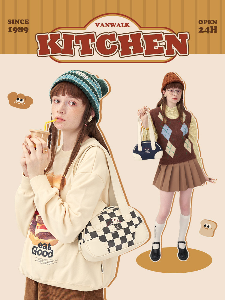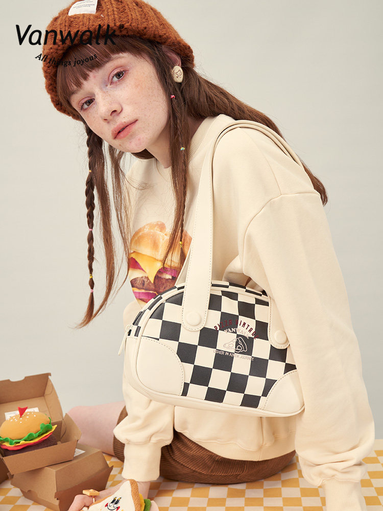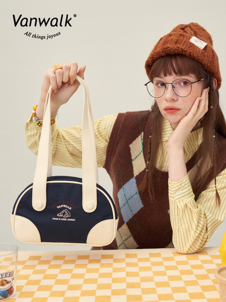 VANWALK retro food original American retro shoulder bag female autumn and winter sweet bowling baseball bag portable
