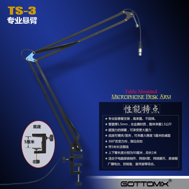 Gottomix TS-3 Professional Cantilever Microphone Live Recording Microphone Desktop Wind Steps