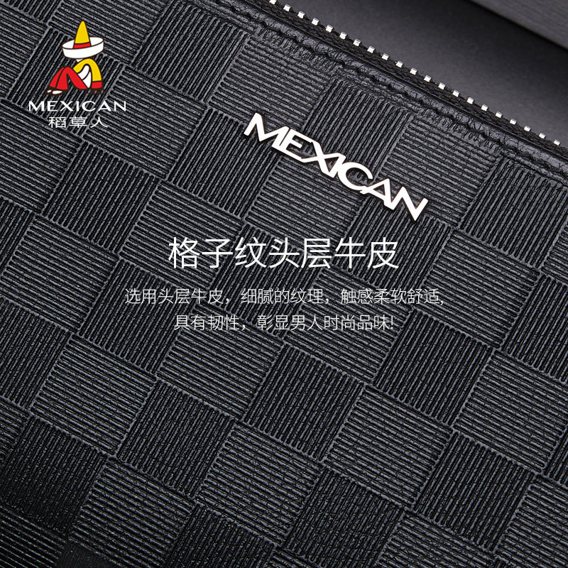 Rice Straw Man New Leather Clip Men's Long Version Hand Held Genuine Leather Bracelet Zero Money Card Bag Integrated Leather Clip Large Capacity Light Extravagant