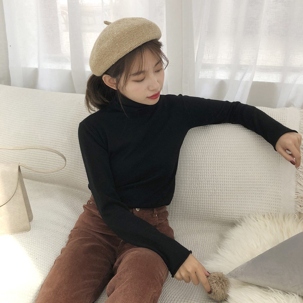 High-neck bottoming shirt women's 2021 Korean version autumn and winter basic style slimming Western-style high-neck knitted sweater with a sweater inside