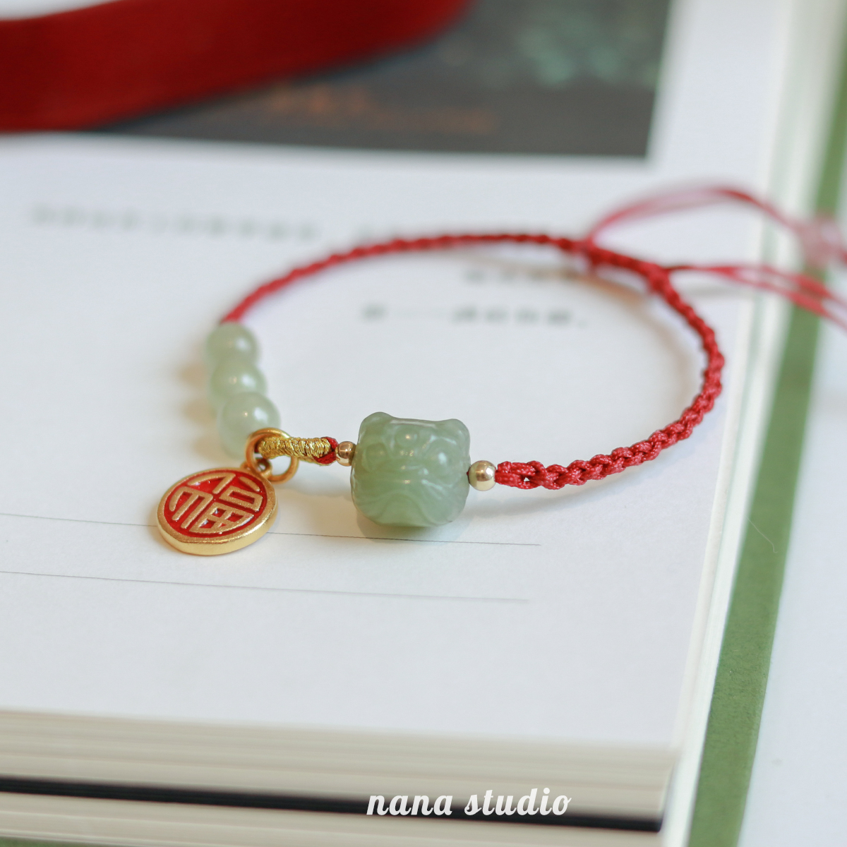 Natural And Tian Jade Tiger Year Red Rope This Year Hand-made Female Transfer Foe Weave Hand Rope Gift
