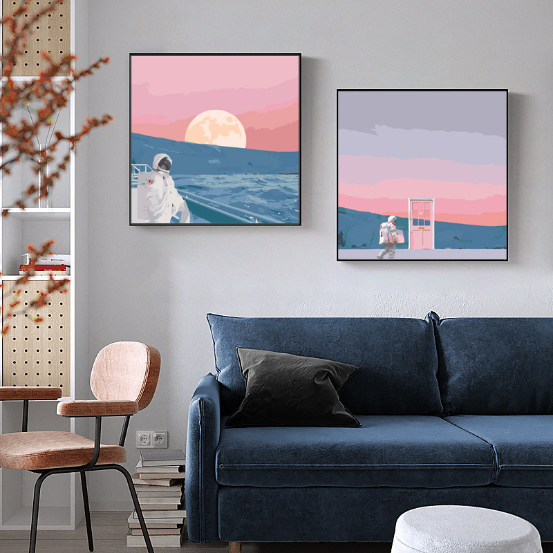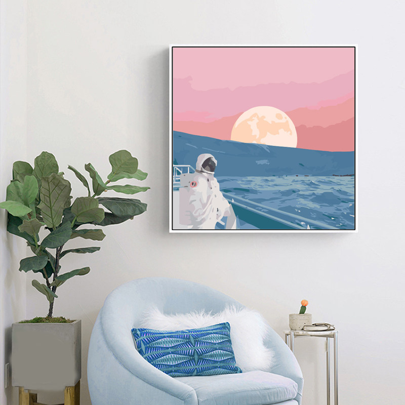 diy digital oil painting minimalist living-room oil color painting fill handpainted star moon decoration painting on the color cosmonaut cartoon