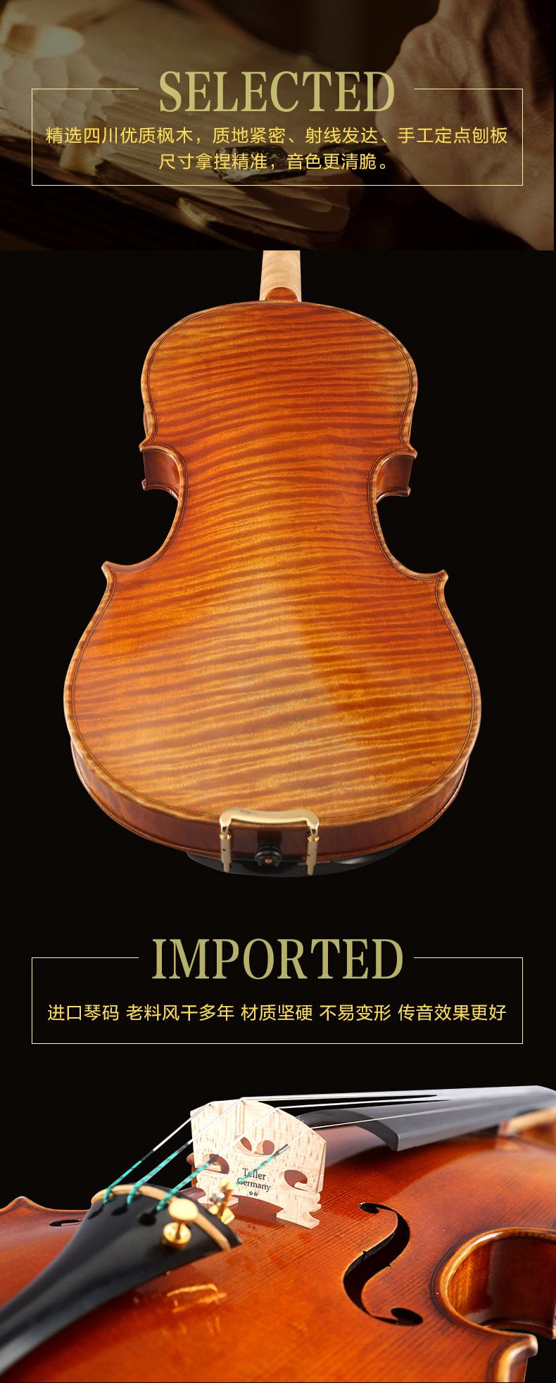 High-end children's handmade violin professional performance level adult beginners college students single board 4 4 4