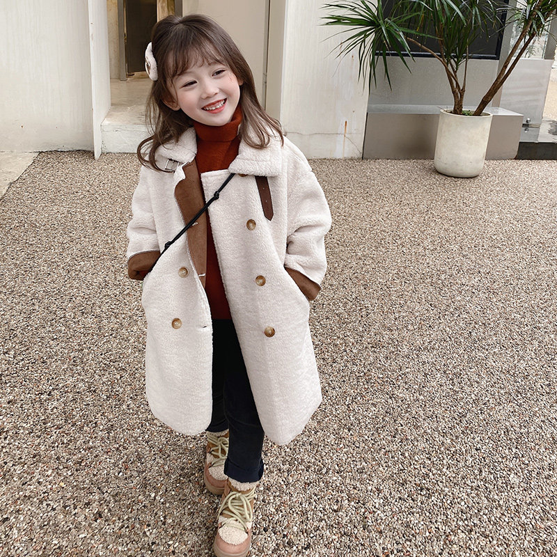 Girls Lamb Cover Ocean 2022 Fall and Winter New Children's Fur Clothing