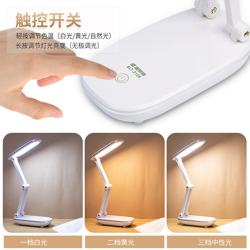 Foldable small table lamp dormitory college students high school portable children's bedside lamp super long battery life rechargeable eye protection lamp