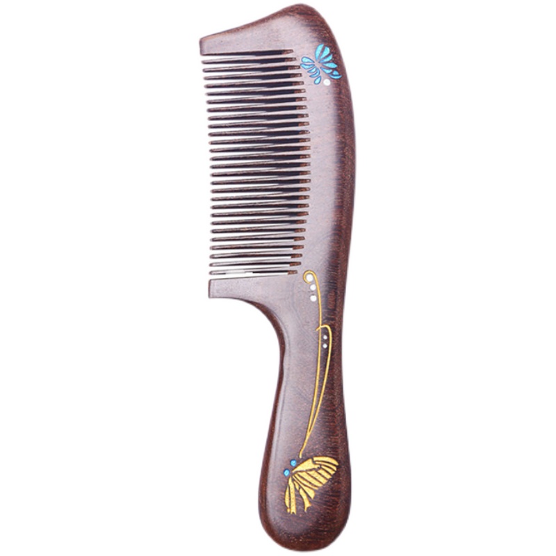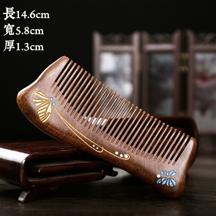 Natural sandalwood comb handle massage comb meridian head treatment anti-static large gold silk sandalwood dense tooth comb retro