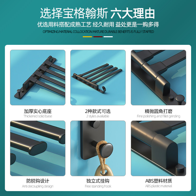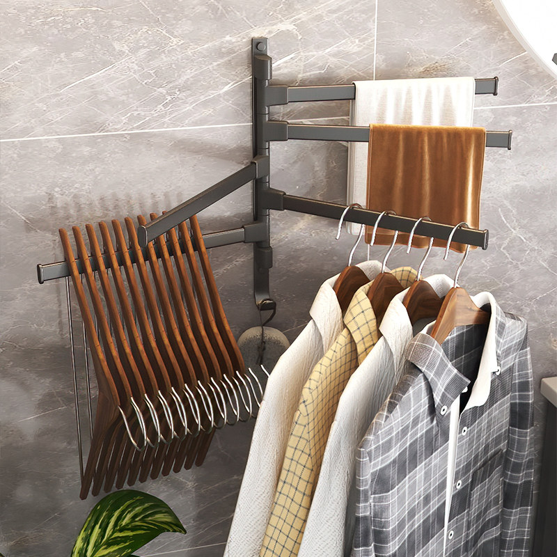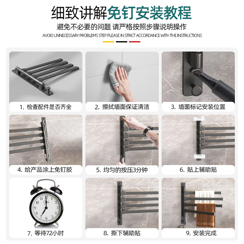 Rotating bathroom hanging towel rack free punch net red drying space aluminum towel pole Bathroom hanging hostel shelf