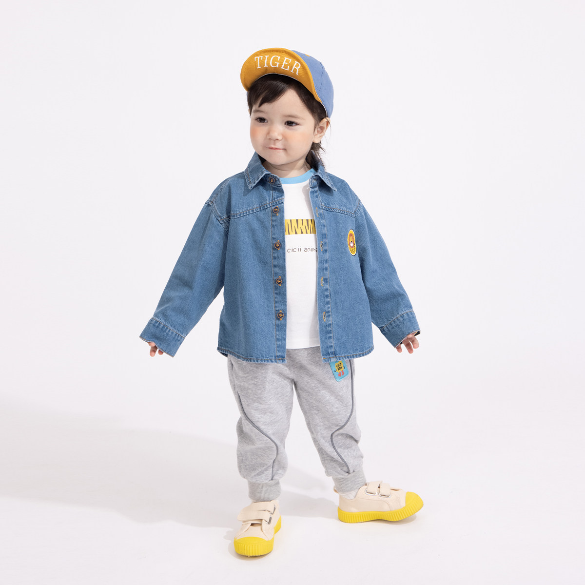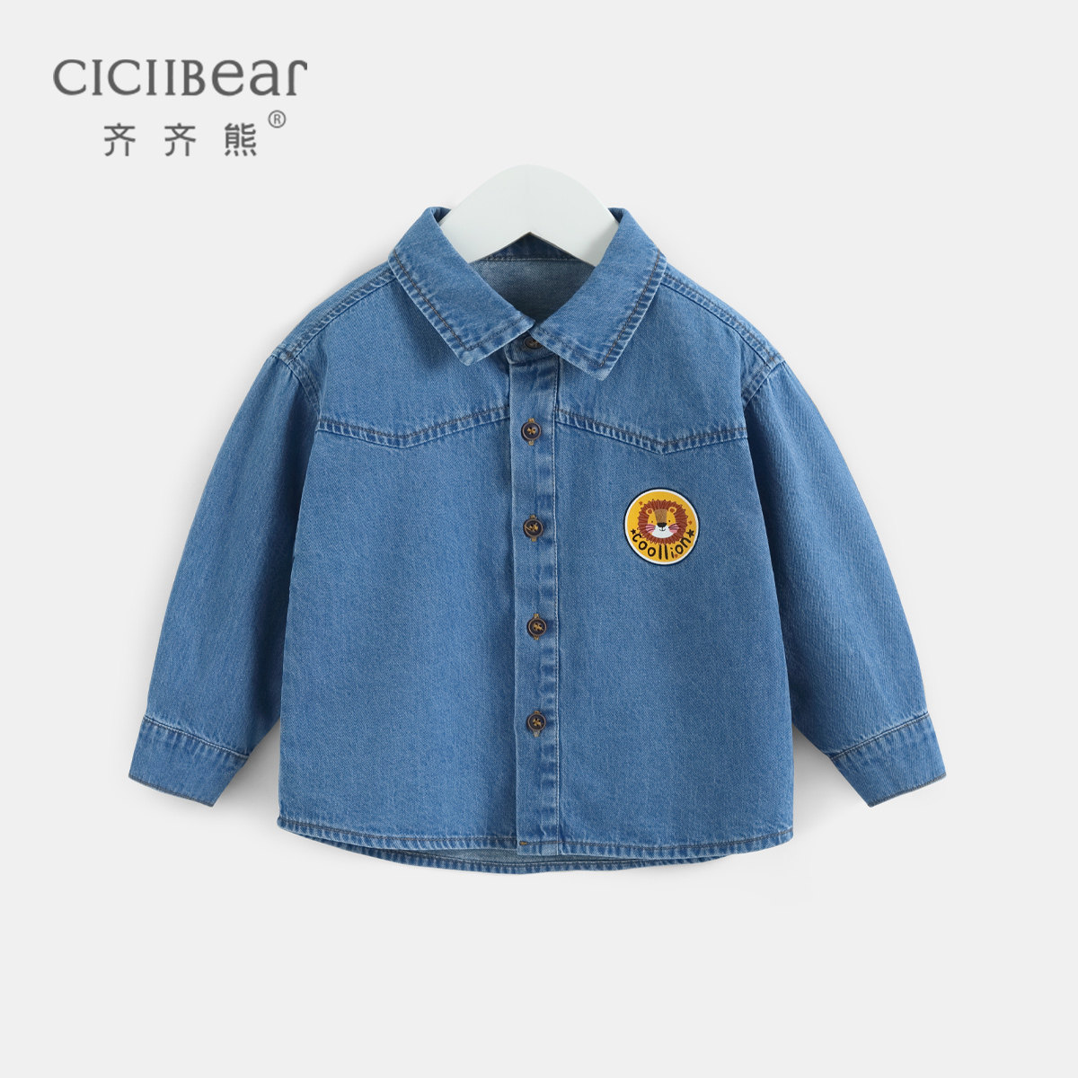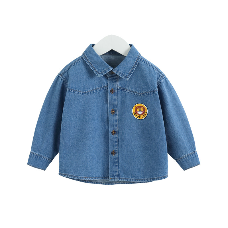 (2022 Spring Festival Previous New) Zizi Bear Baby Denim Shirt Spring Autumn Boy Long Sleeve Shirt Child Thin Coat