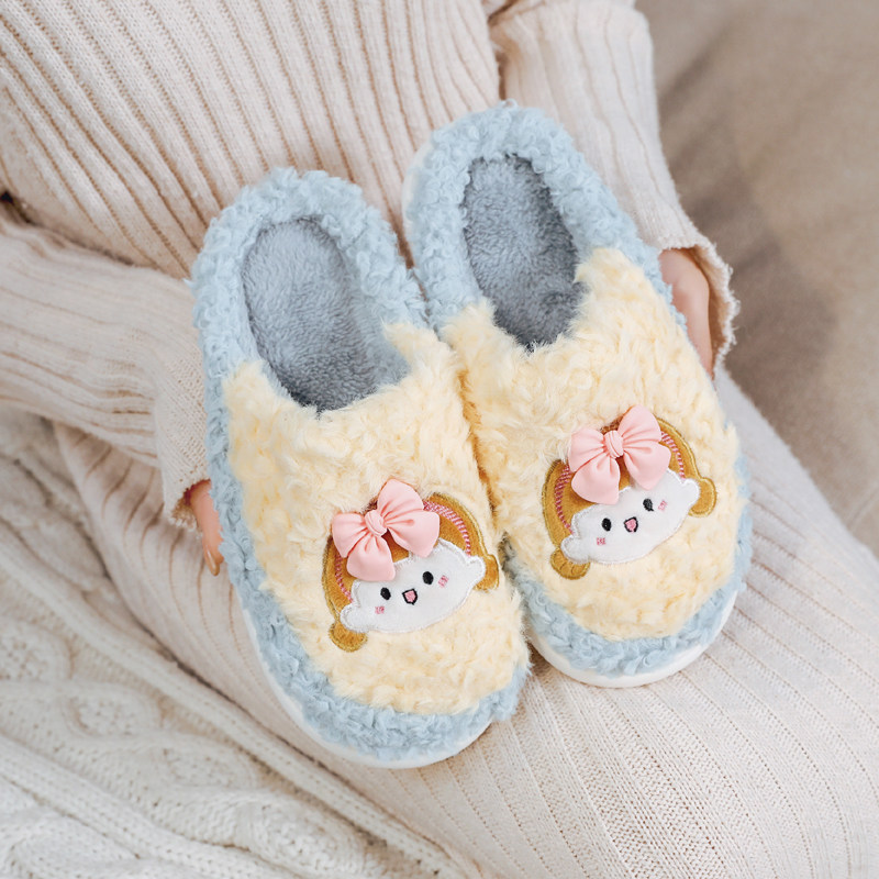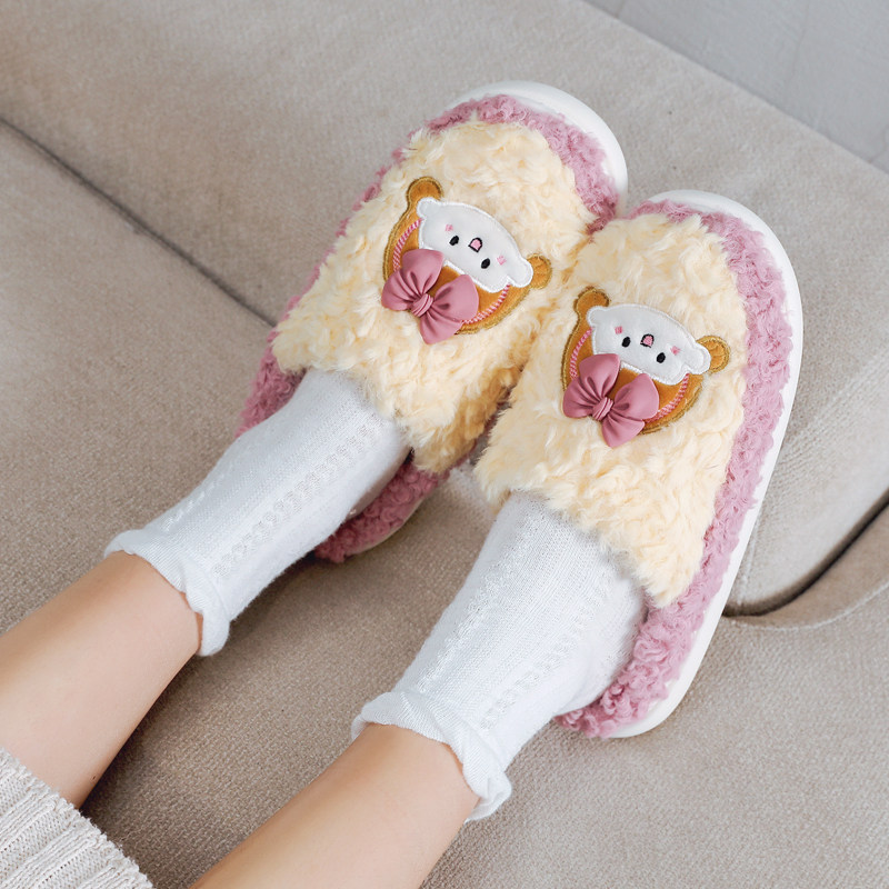 Girl Heart Winter Sweet Indoor Warm Half Pack Heel Plush Cotton Slippers Cute Cartoon Anti-slip Baotou Home Shoes