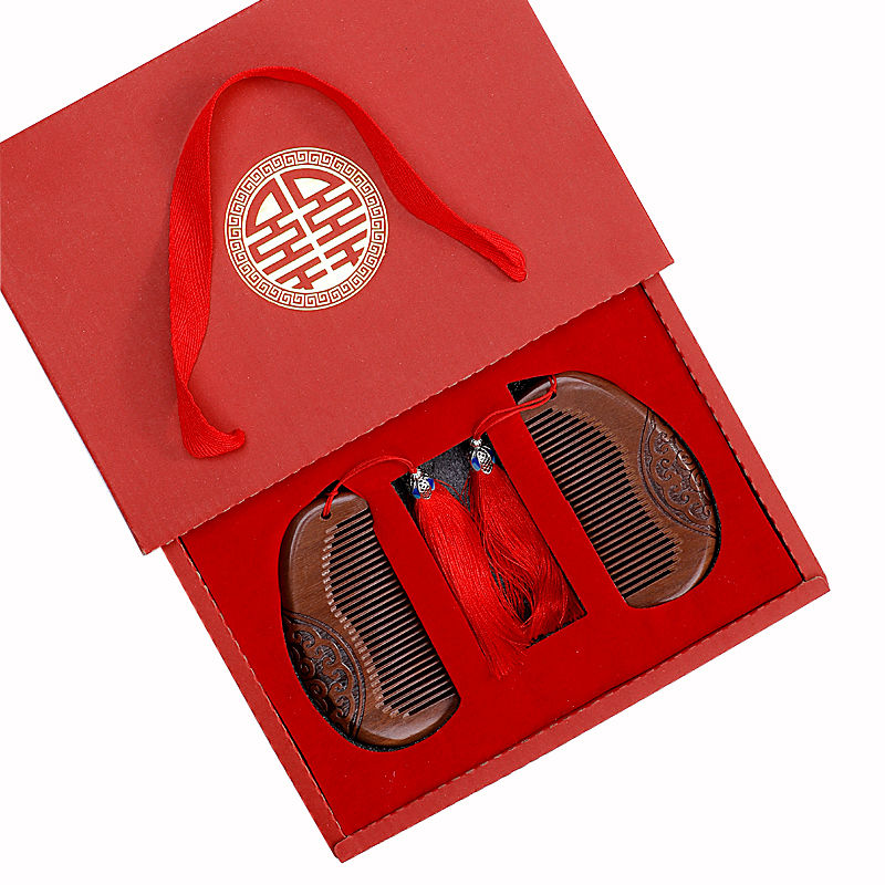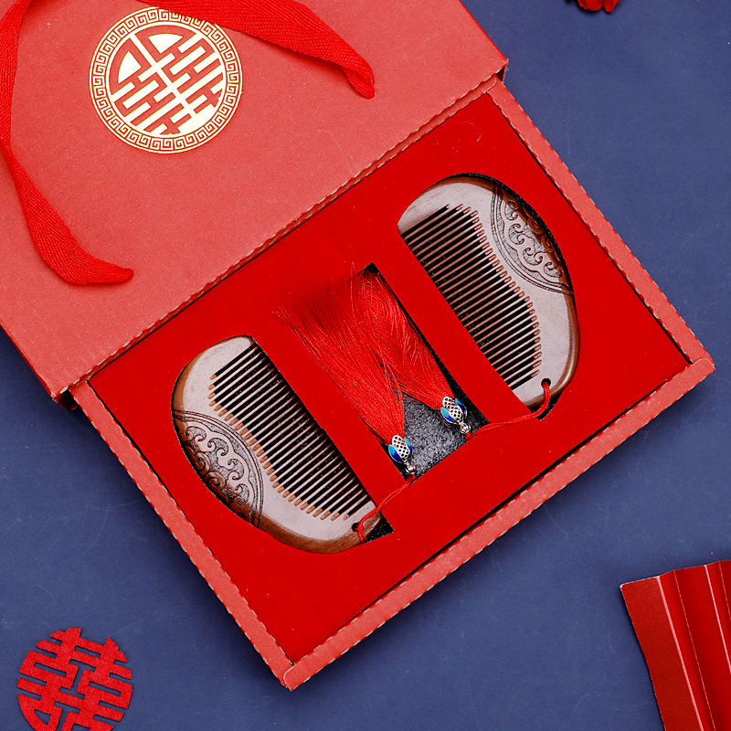 wedding comb wedding dowry sandalwood pair mirror wedding wood comb pair red gift box set