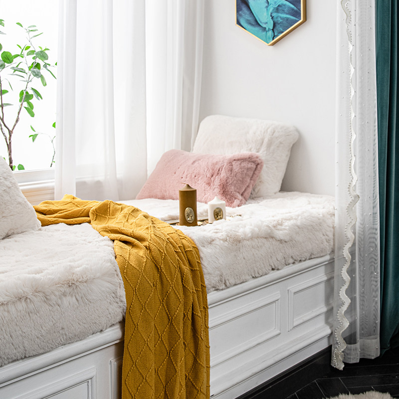 Winter plush bay window cushion window sill cushion 2021 new high-end rabbit plush fur blanket balcony winter tatami