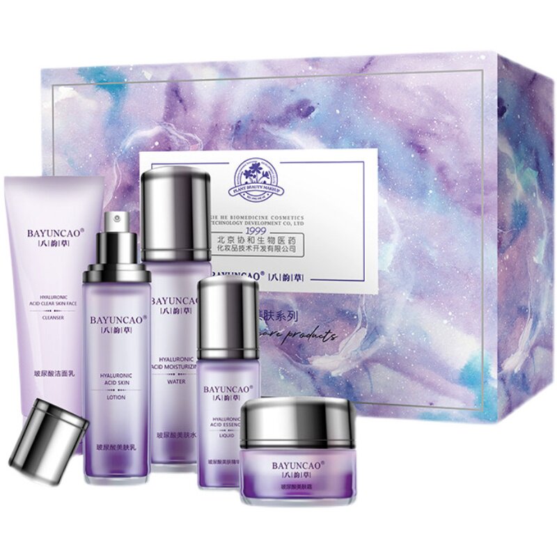 Eight rhyme grass hyaluronic acid skin beauty boutique combination water milk cleanser essence 5-piece set to improve dullness, dryness and lack of water