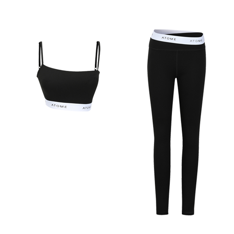 ATOME Sports Fitness Diagonal Ribbon Vest Suit Women's High Waist Yoga Slim Quick-drying Tight Trousers Shockproof