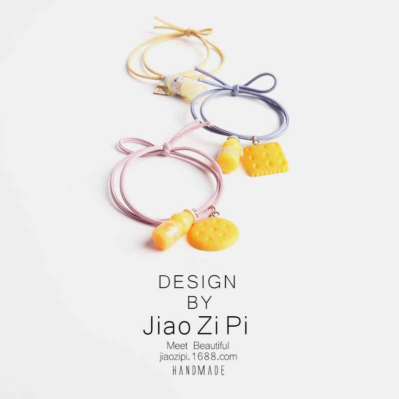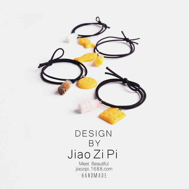 Simulation drink beige hair ring blue Yakult square biscuit blue hair ring pink Yakult beige hair ring pink Yakult round biscuit pink hair ring red Yakult fish biscuit black hair ring red raising
