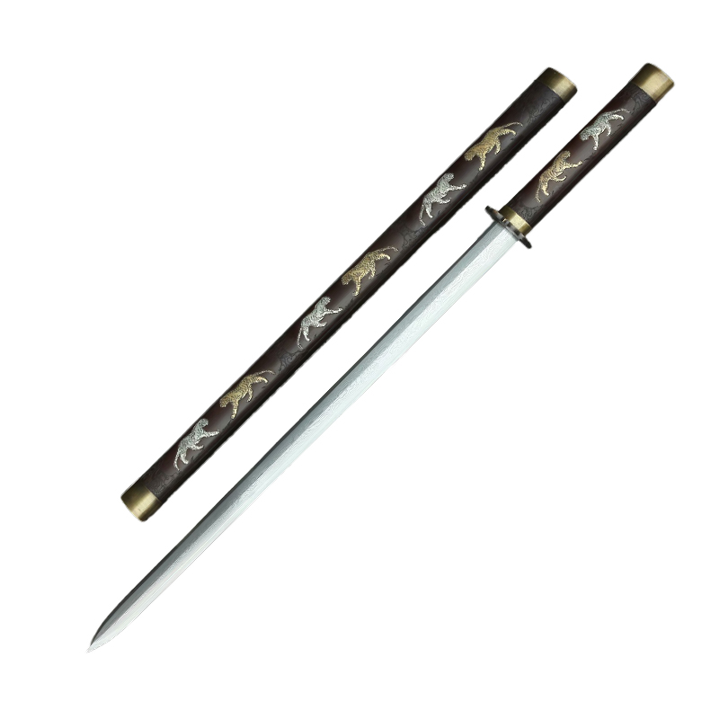 20-inch three-color bronze Tangsword-Menghu (brass sheath) Provincial master Ji Satoshi unopened with flower pattern steel