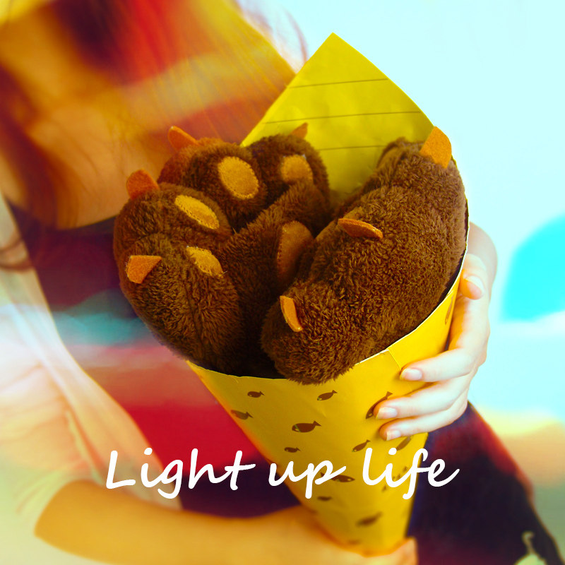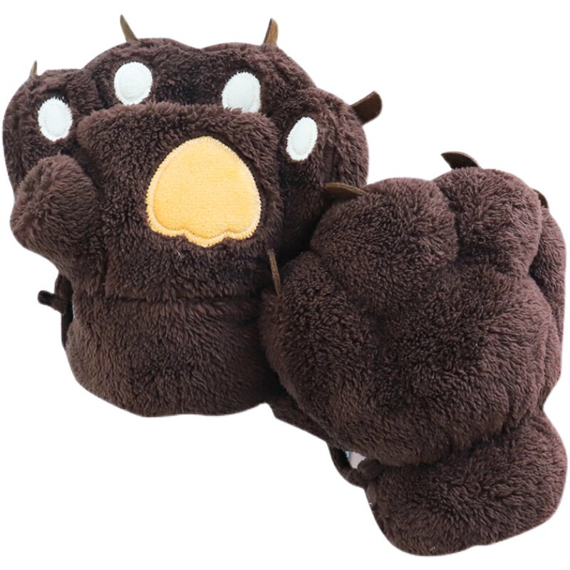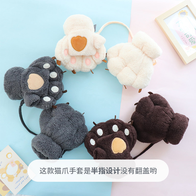 Cute Cat Paw Half Finger Gloves Female Winter Bear Palm Student Thickened gush warm plush half cut finger Bear Paw Hanging Neck