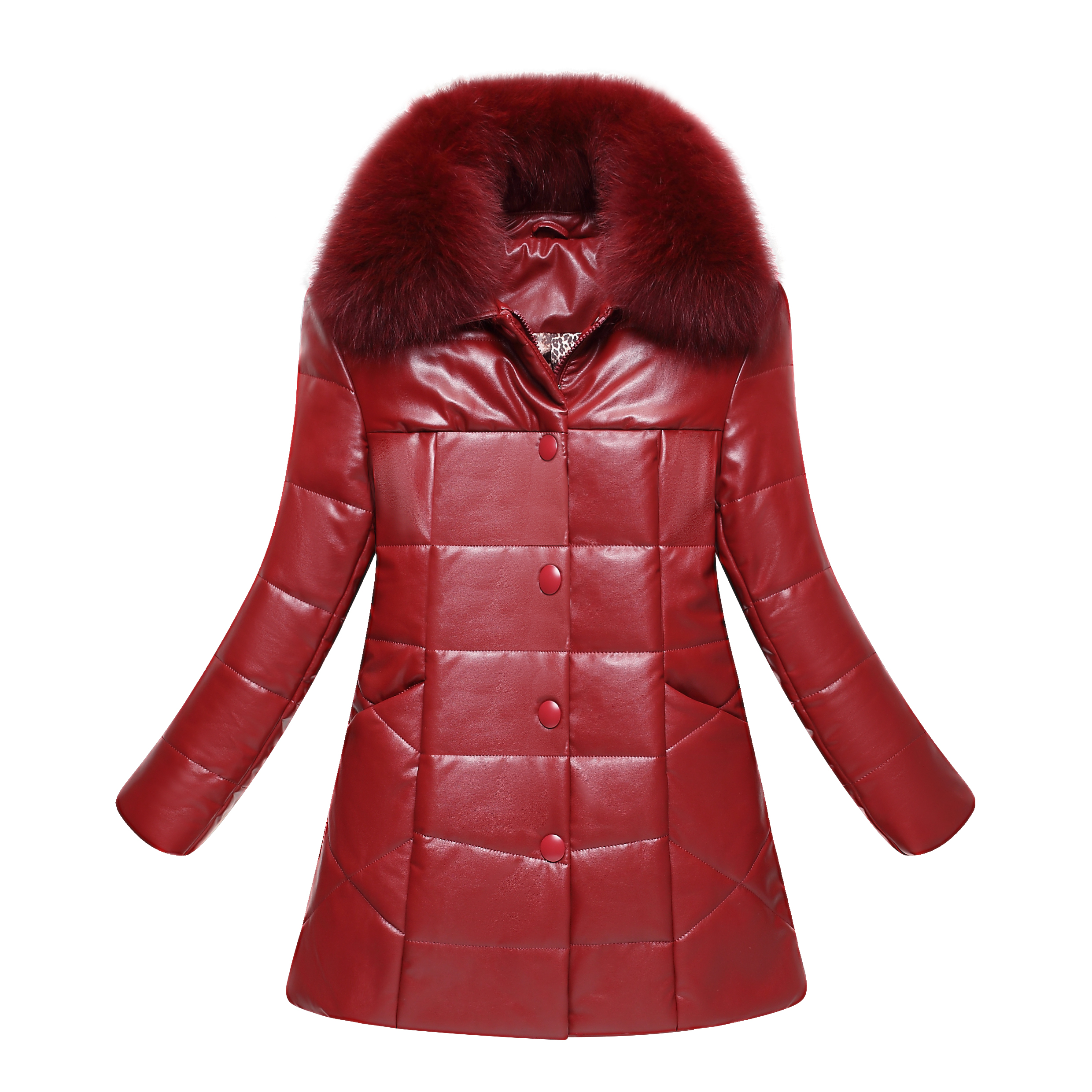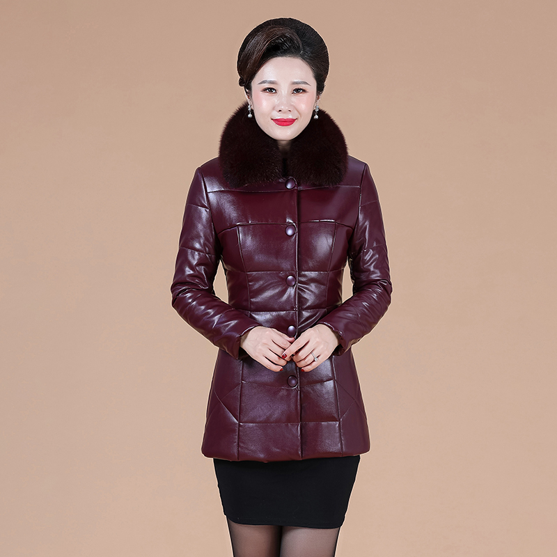 Mid-aged mom genuine leather down jacket for female short winter turned collar for big size Fashion Haining skinny leather jacket
