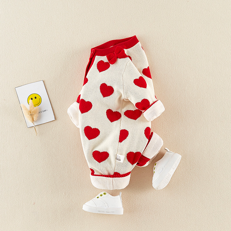 Infant sweater jumpsuit autumn and winter clothes baby knitted sweater plus velvet romper rompers winter out warm linen