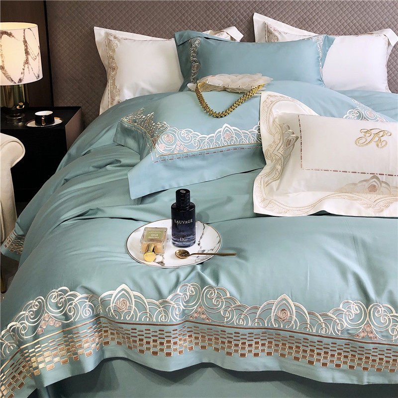 Upscale 140 long suede cotton pure cotton four pieces style 100 All cotton light lavish minimalist Embroidery Quilt Cover Bedding