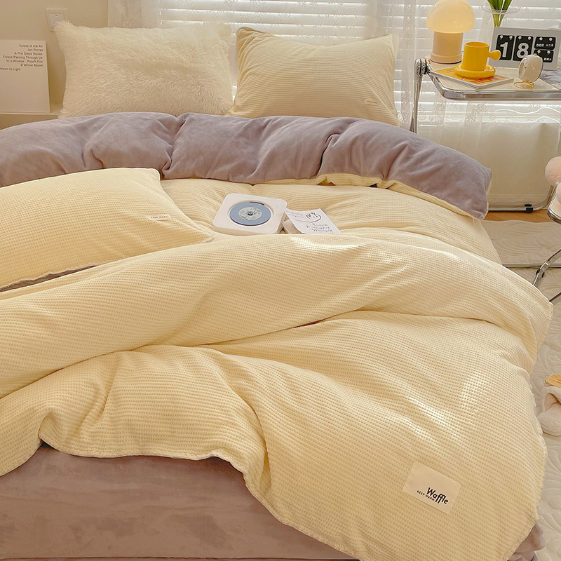 Baby Waffg Milk Suede Bed Four Pieces Double Sided Baby Suede Quilt Cover Bed Pint Autumn Winter Coral Gushed Sheet-Taobao
