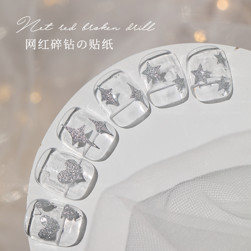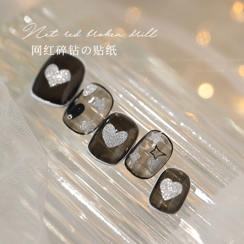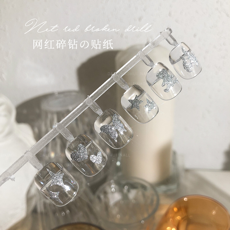 Net Red Broken Diamond Loving Beauty Nail Sticker 2023 New Ultra Shiny Silver Powder Small Bear Star Mango Butterfly Back Gum Nail Appliquer-Taobao