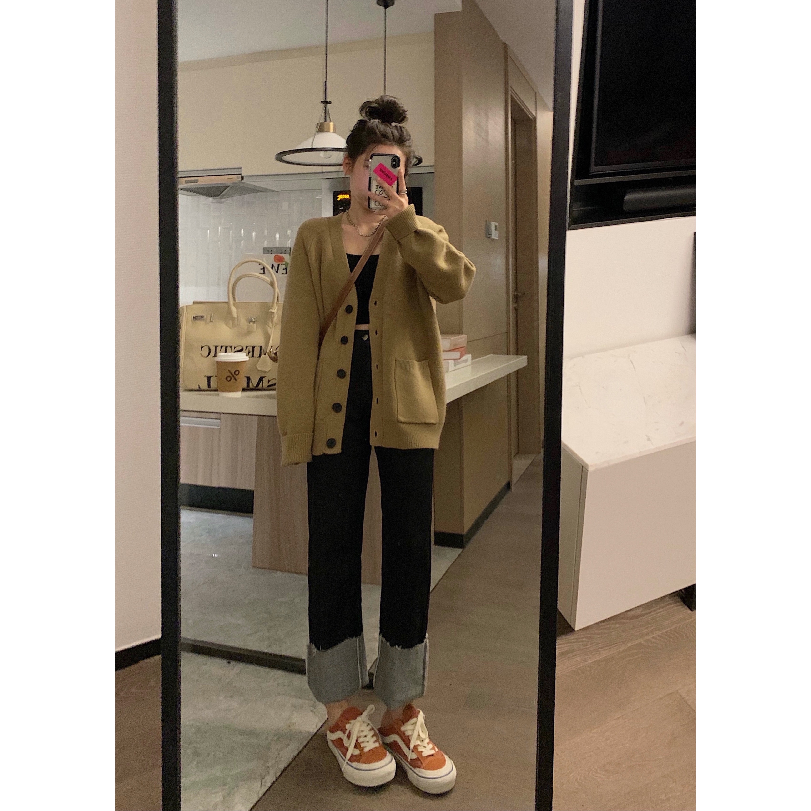 Veee 2 colors are good-looking lazy classic pocket V-neck sweater knitted cardigan slim solid color warm jacket for women