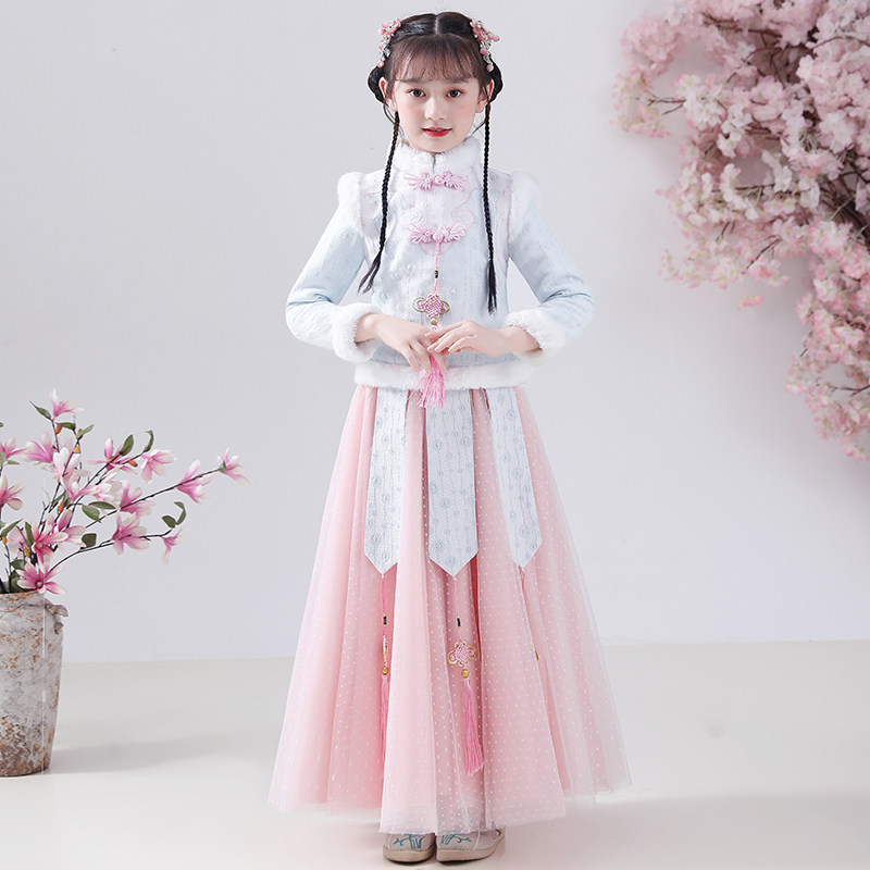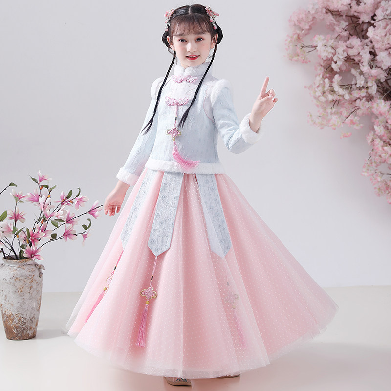Hanfu girl's winter dress thickened children Tang suit Chinese wind ancient dress qipao dress New Chinese New Year clothes women's baby Baiyear clothes
