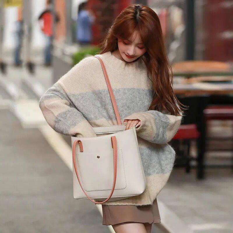 Hong Kong Fashion Bags Women's 2022 New Texture Joker Large Capacity Shoulder Bag Cowhide Tote Bag Women