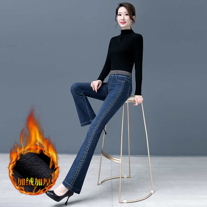 Microlagha Jeans Woman Spring Autumn 2022 New Broadleg Plus Suede Thickened Trousers Female Display Slim Straight Drum Horn Pants