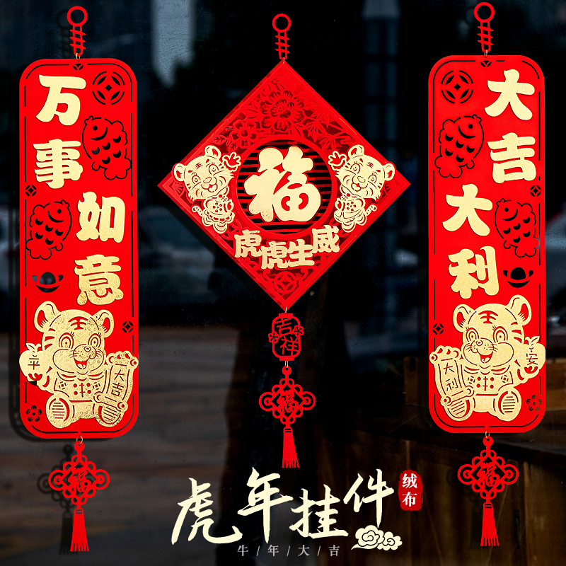 2022 Year of the Tiger decorations pendant New Year's Spring Festival scene layout New Year's Day home shop kindergarten pendant
