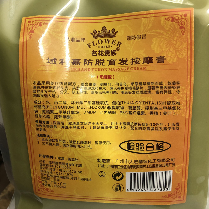 Bagged Yulijia heat energy old ginger king anti-hair loss hair growth massage cream ginger mud shampoo hair mask hair conditioner 1L