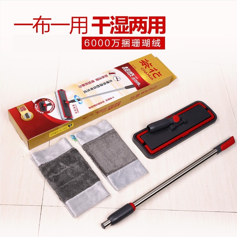 Tea flower dry and wet mop wood ground flat ultra-fine fibre home plate dust removal light riding flat drag 4708