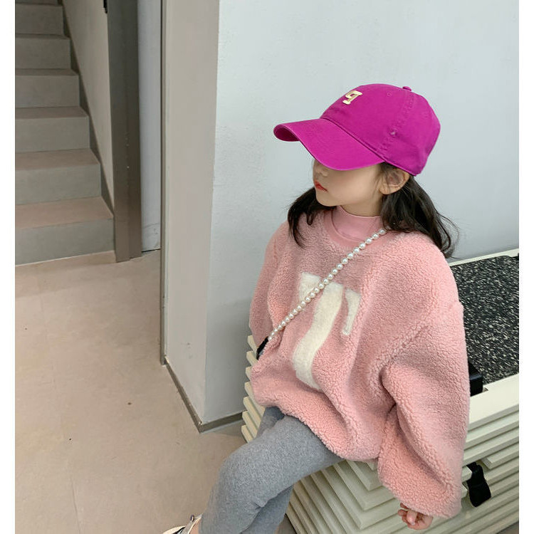 Girls' thick T-shirt 2022 autumn and winter new trend Western style loose letter velvet sweater children's treasure plus velvet thick top