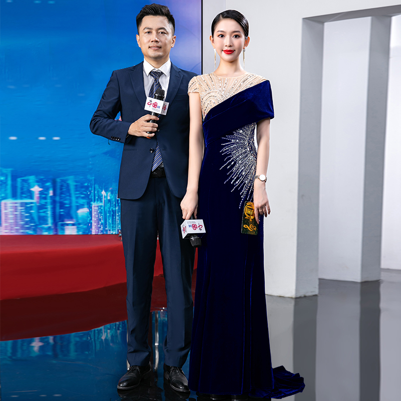 Powerful host evening dress skirt female 2022 new art examination banquet temperament celebrity high-end wedding annual meeting