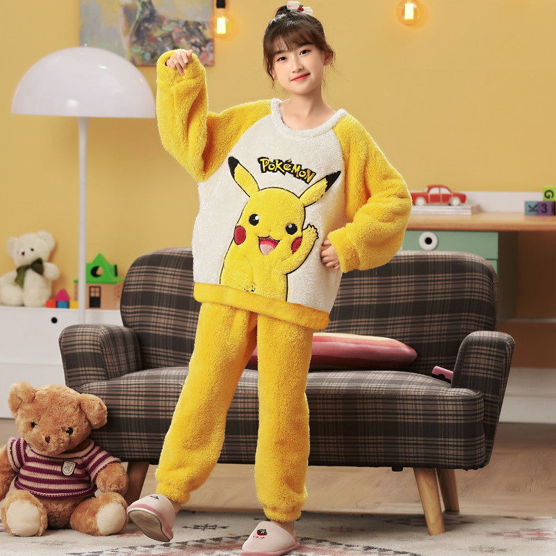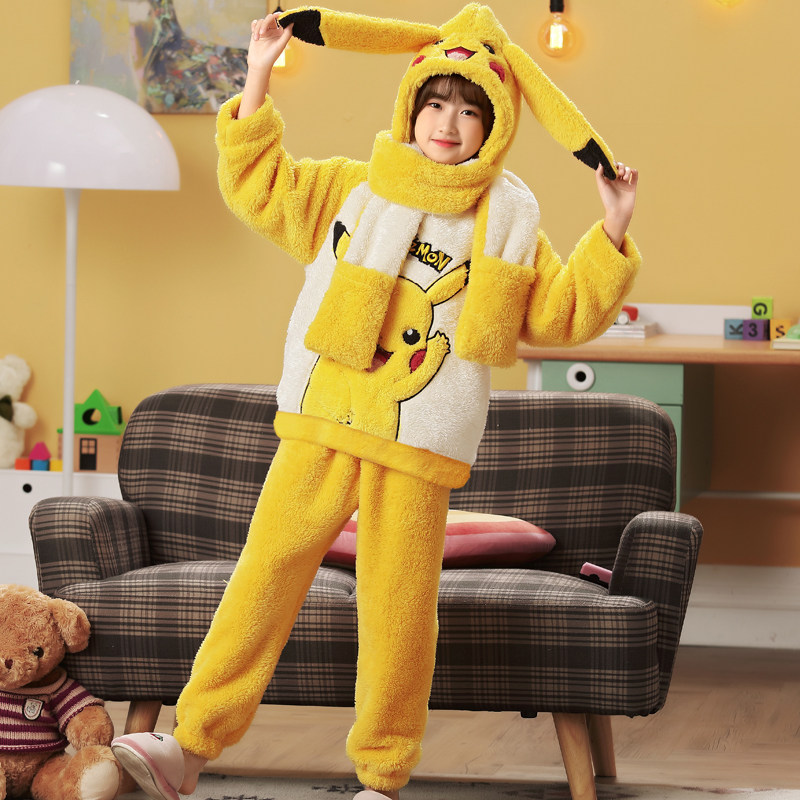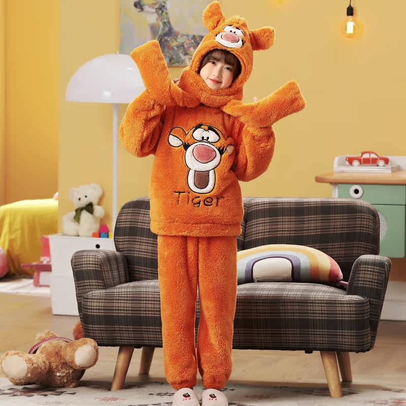 Children's Pyjamas Girls Flannel Autumn Winter Thickened Coral Suede Girl Princess CUHK Child Scarves to Cap Home Clothing