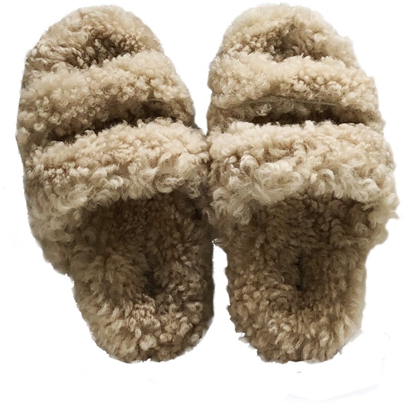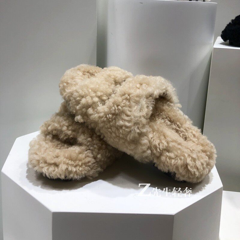 Hairy slippers women's winter outer wear 2022 new fur one-piece flat bottom white net red popular lamb wool flip flops