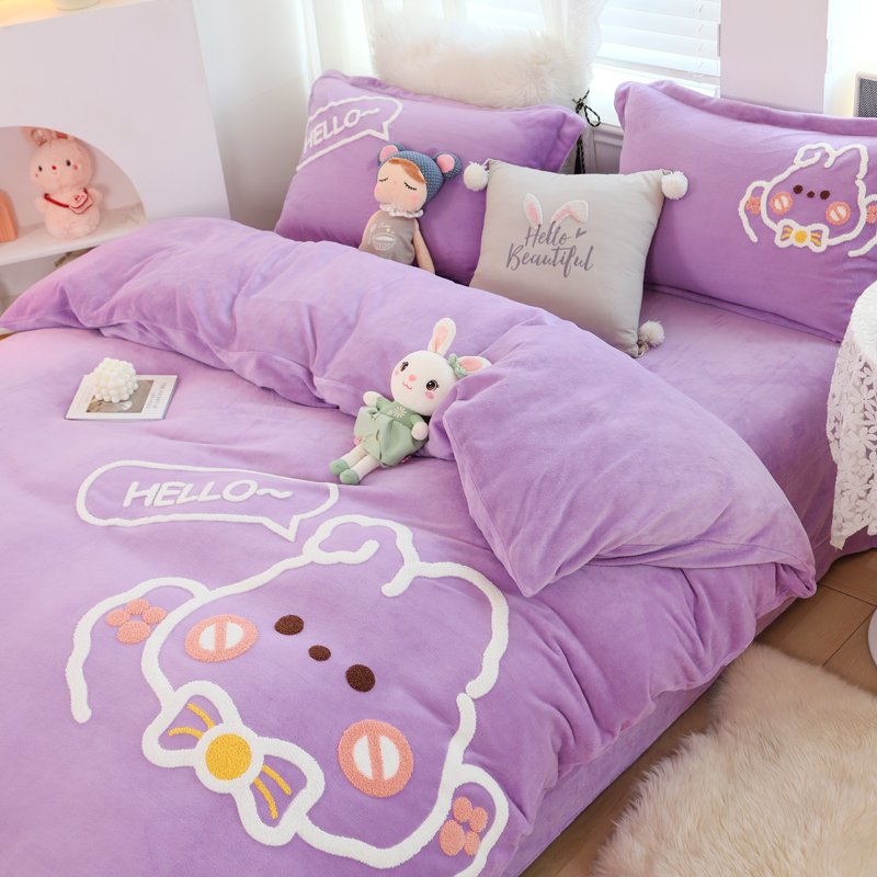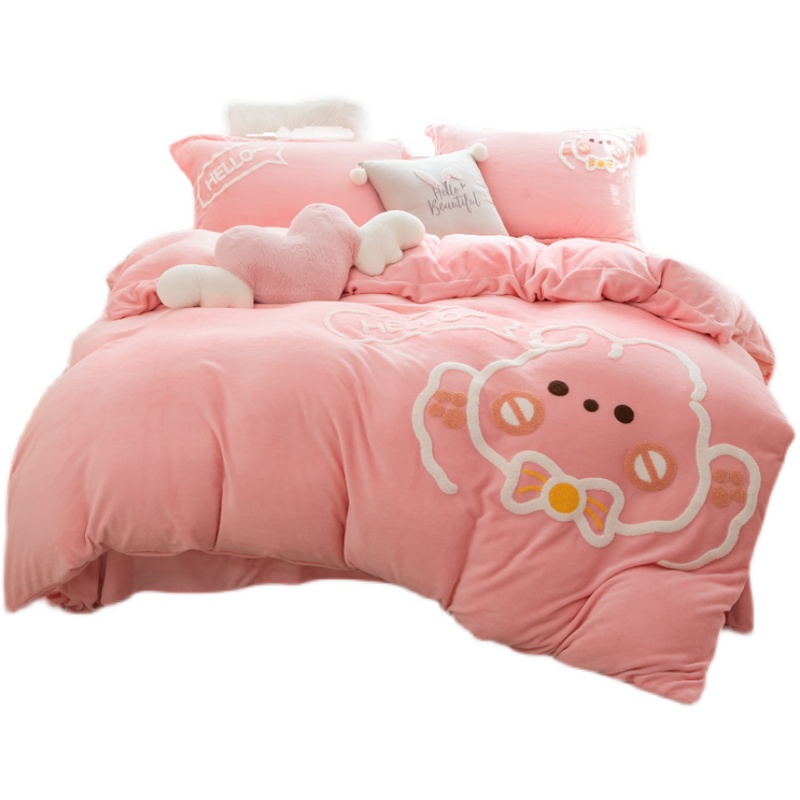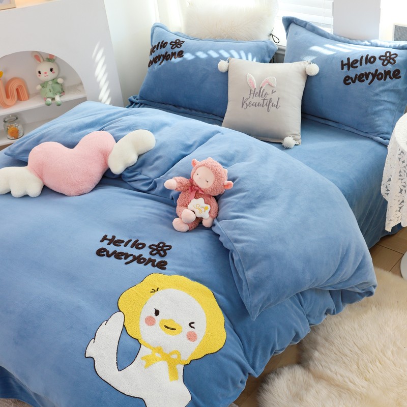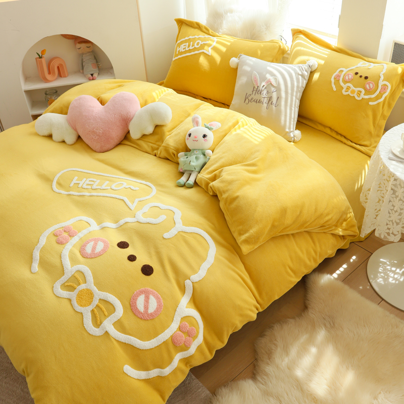 Gog heavy-thickening cartoon cow milk cow three pieces of winter warm double-sided precious four-piece bedgroup