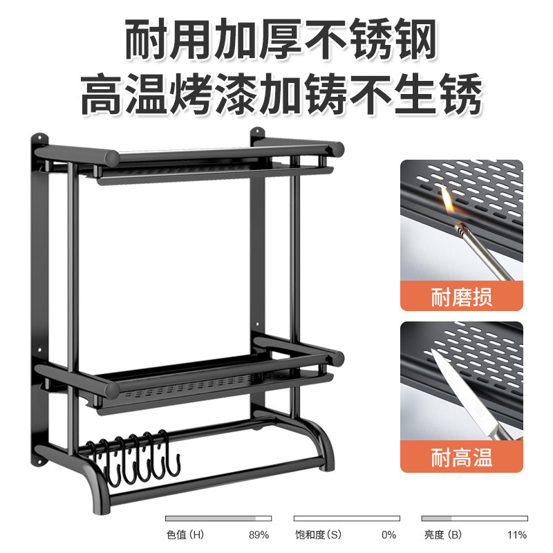 Bathroom rack wall-mounted non-perforated bathroom towel rack stainless steel black rack three-layer double toilet