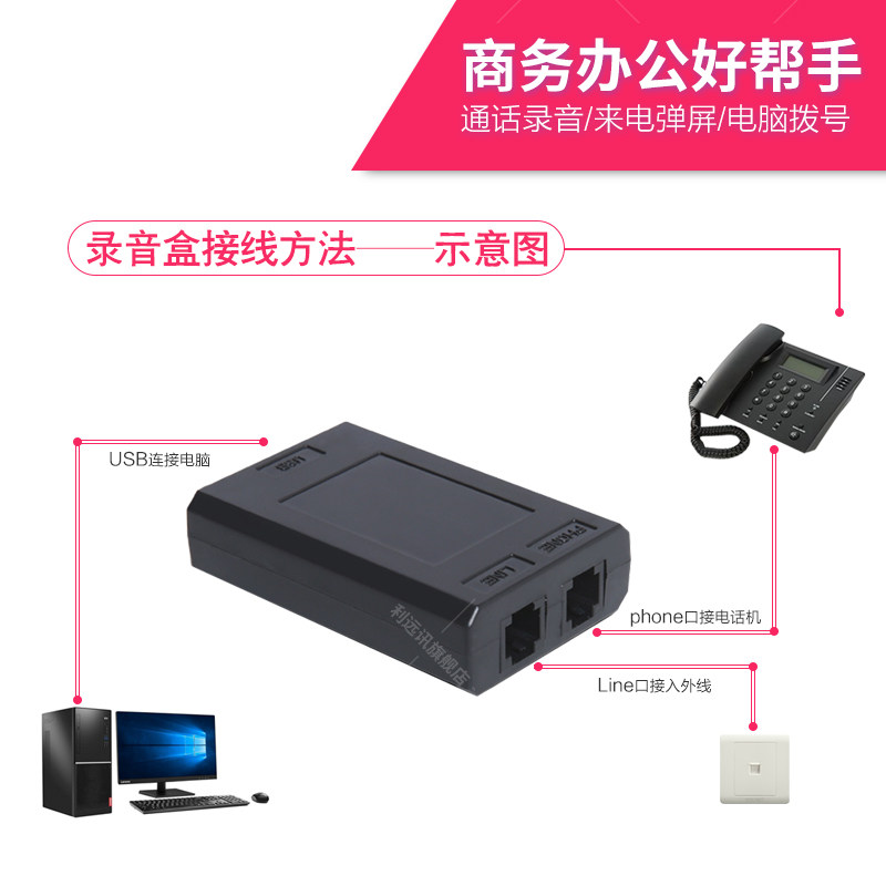Telephone Recording System Fixed Telephone Recording Box Telephone Recorder Device Seating Machine Solid Talk Automatic Recording USB Recording Box Customer Call Play Screen Computer Dial-up Recordings Management-Taoba