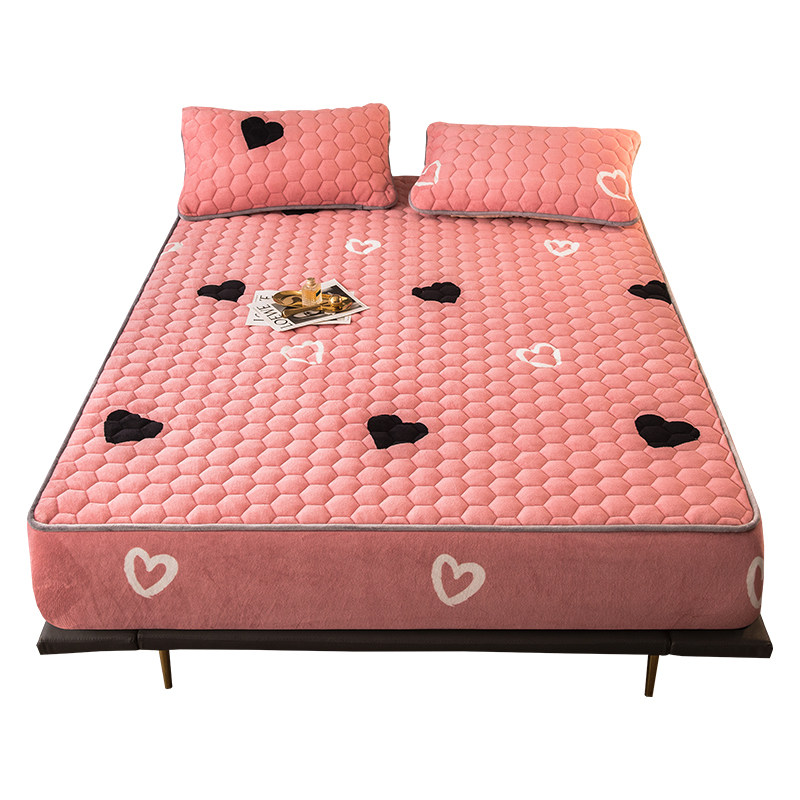 Winter plus velvet milk coral suede thickened flannel dormitory single non-slip fixed bed sheet single piece