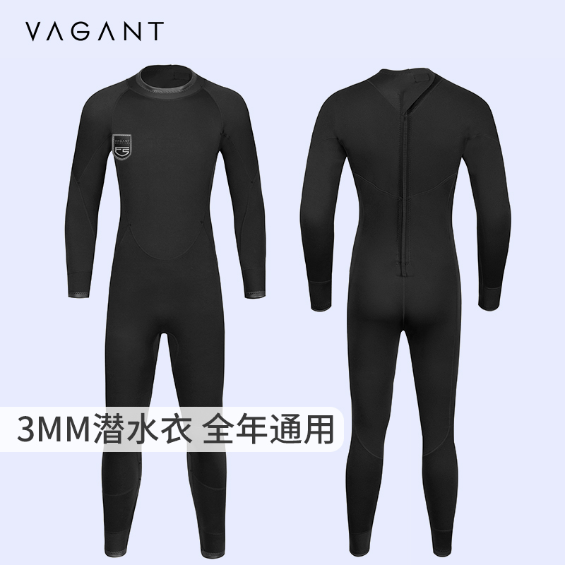 VAGANT3MM thickened wetsuit men's warm and cold-proof one-piece wetsuit rear zipper free snorkeling surfing swimsuit